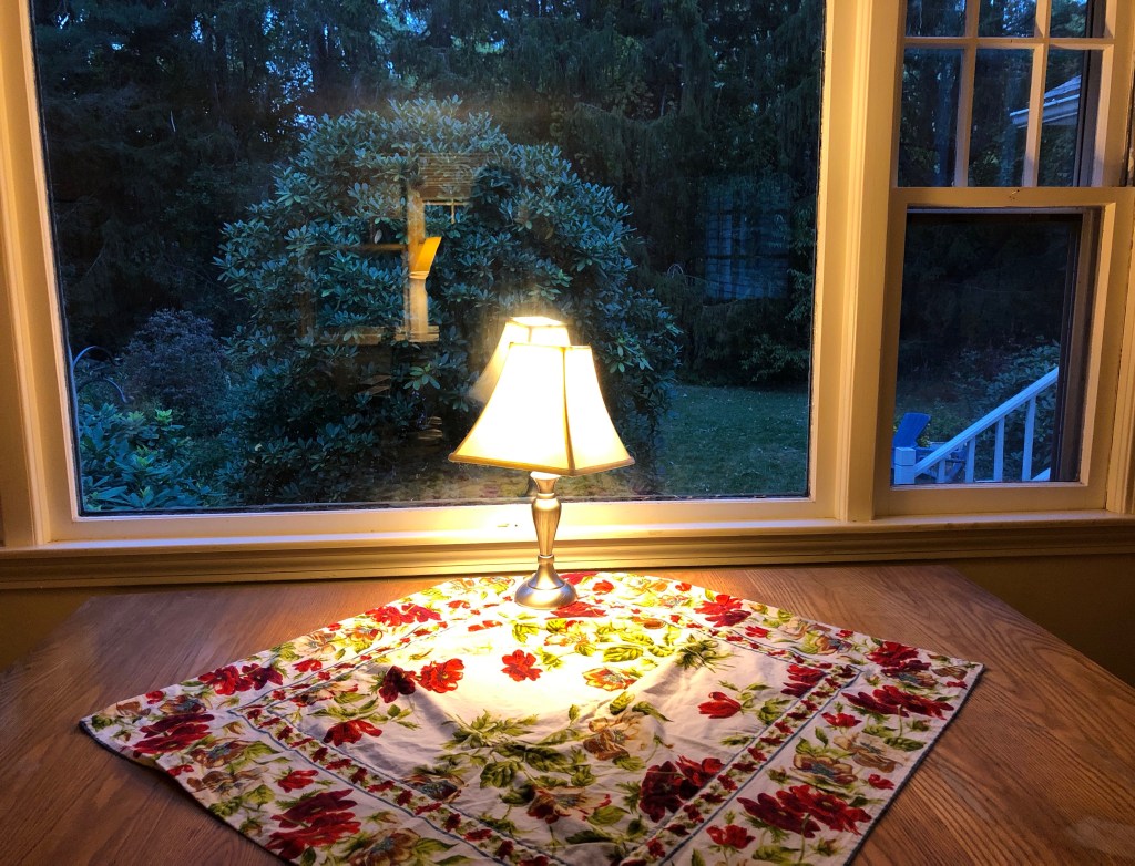The empty table seems to be issuing an invitation but for what? An as yet to be discovered art project? A display of family photos and papers to stimulate my writing? A different sewing project? (I could use a new duvet cover.) Who knows when I’ll once again invite friends to gather around this table.